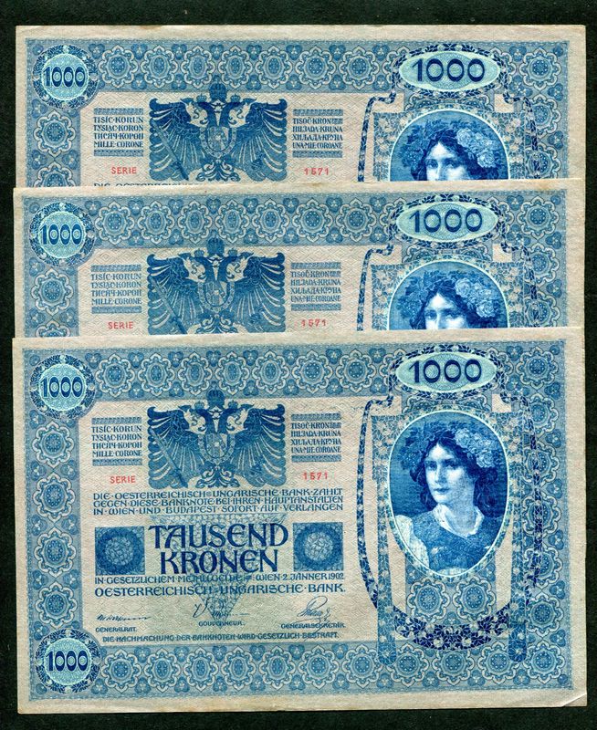 1902 1000 Korona DÖ felülbélyegzés - 3db sorszámkövető