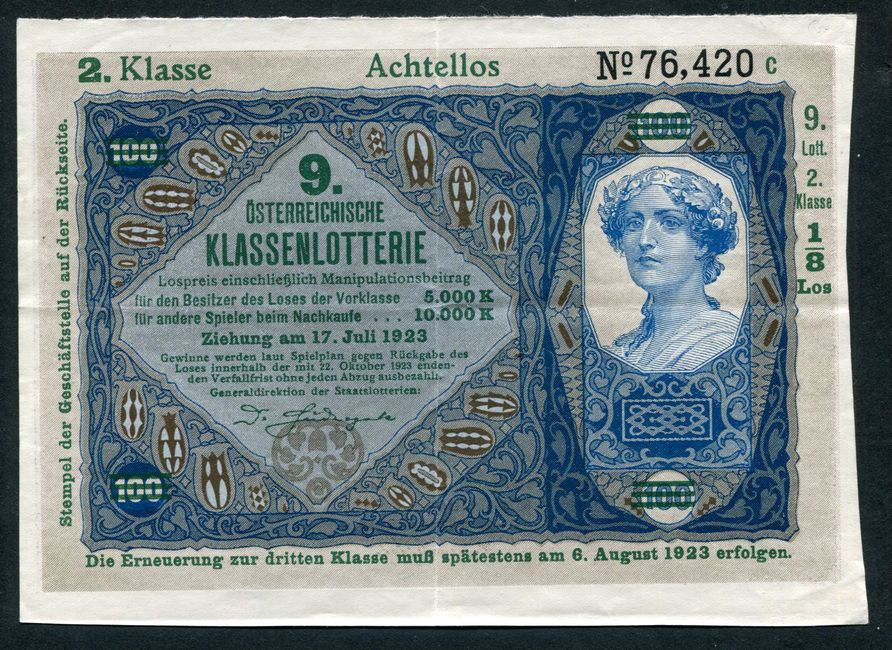 Donaustaat Noten 100 Korona - felülnyomva lottónak