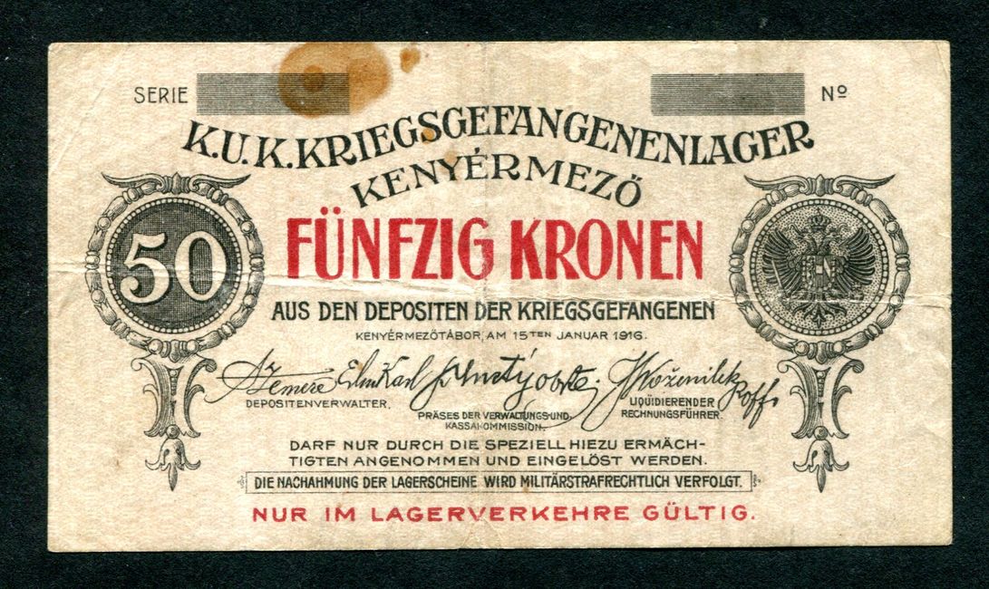 Hadifogolytábor - Kenyérmező 50 Korona. Sorozat- és sorszámozás nélkül.