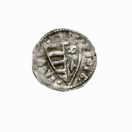 Károly Róbert denár Ezüstkönyv 24/45/1A. Előlapon a címer körül nincs belső gyöngykör.