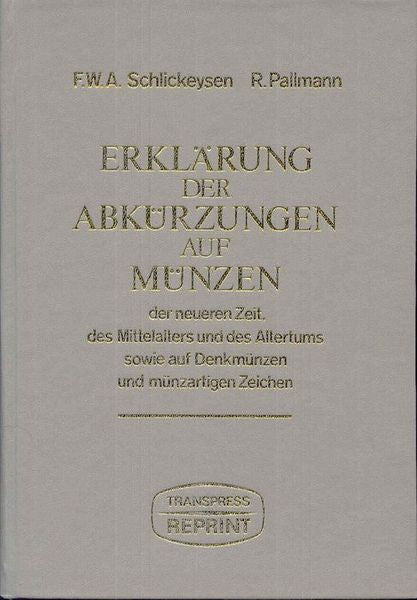 Schlickeysen: numizmatikai rövidítések és azok feloldásai. 550 oldal.